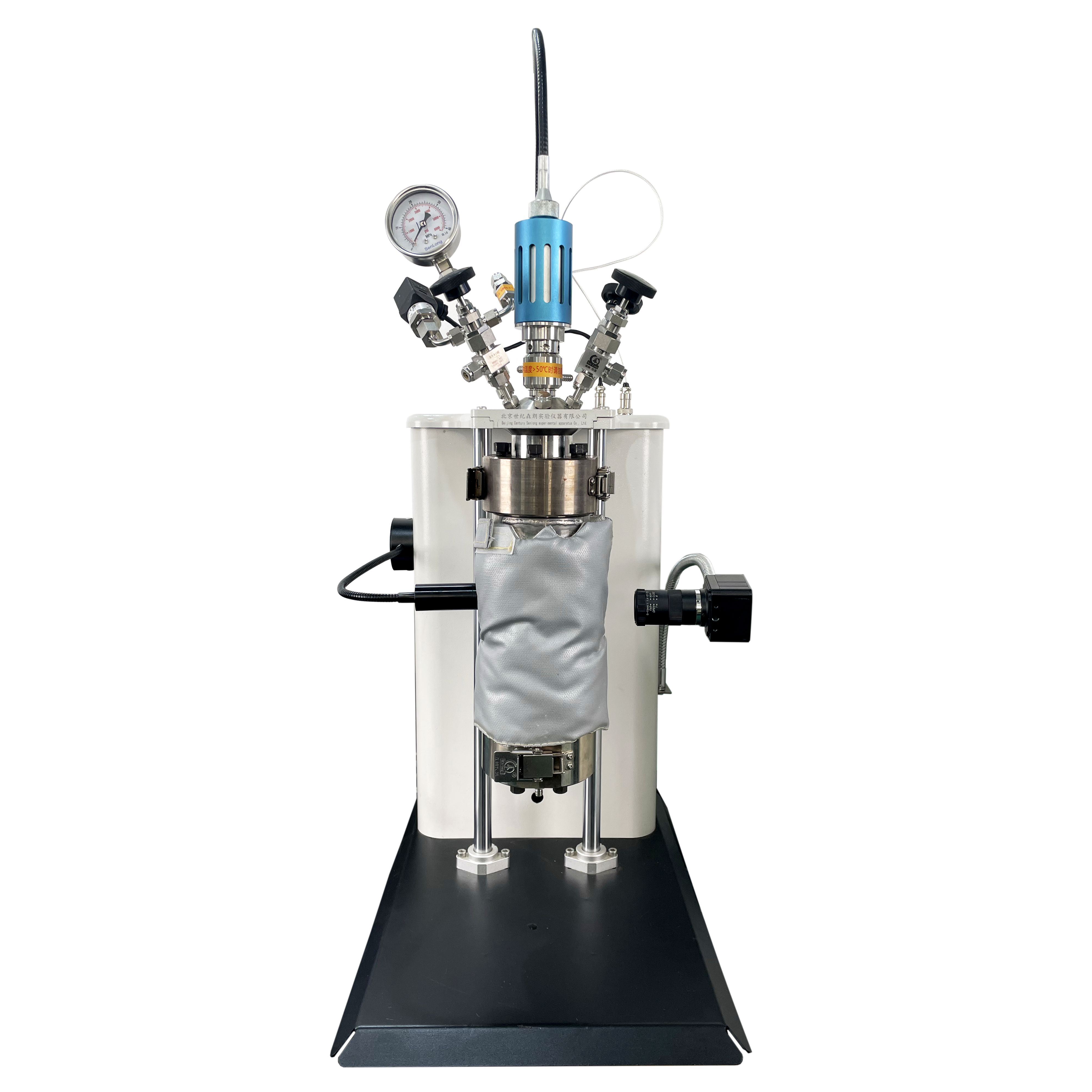 (4)攪拌方式:頂入式軟驅動磁耦機械攪拌(速度可調)攪拌平勻快速;